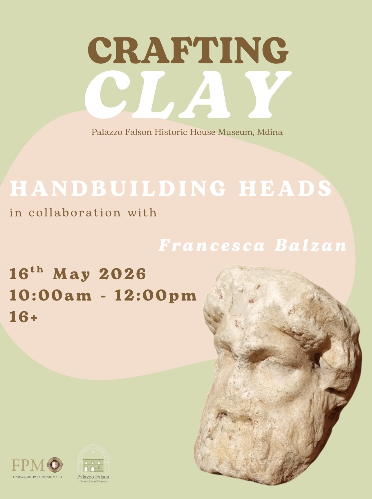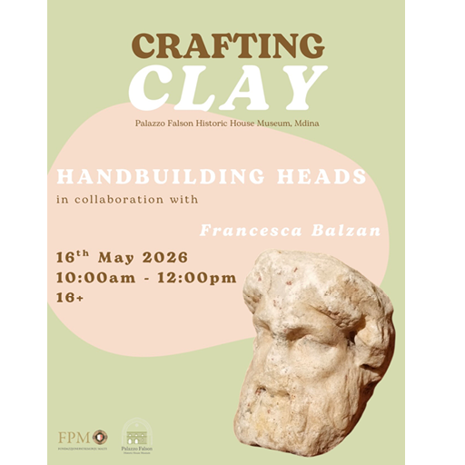 Led by Francesca Balzan, renowned sculptor, art historian, and curator whose practice merges archival research, materiality, and portraiture, who will demonstrate her clay head–making process following which participants will then have the unique opportunity to create their own clay head under her guidance. The workshop also includes a short tour of Palazzo Falson, focusing on heads and busts. While the sculptures will not be fired, participants are welcome to take them home to air-dry.